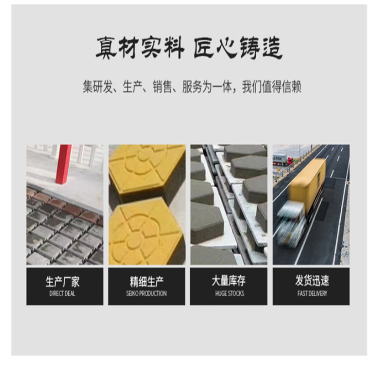 多功能。與整體澆灌的剛性混凝土路面相比,它采用小塊鋪設(shè),塊之間用細(xì)砂填充,因此具有“剛性表面,柔性連接”的獨(dú)特功能,抗變形性能好,尤其適用于變形大的柔性地基。市政建設(shè)中,由于計(jì)劃不周,一會(huì)兒埋設(shè)上、下水道;一會(huì)兒鋪設(shè)煤氣管線、電纜管道等,如路面是混凝土整體澆灌,開挖、修補(bǔ)工程量和費(fèi)用相當(dāng)大,但使用混凝土路面磚,因其是小塊鋪設(shè),中間用細(xì)砂填縫,極易拆除。管道鋪設(shè)后,原來(lái)的磚仍可繼續(xù)使用,這等于給馬路安裝上一條“拉鏈”。由于混凝土路面磚是工廠預(yù)制、現(xiàn)場(chǎng)鋪設(shè),施工、維修、修補(bǔ)方便,鋪設(shè)后立即可以投入使用。而整體澆灌的混凝土路面修補(bǔ)后一定要養(yǎng)護(hù)一定天數(shù),強(qiáng)度達(dá)到規(guī)定要求時(shí)才能啟用。